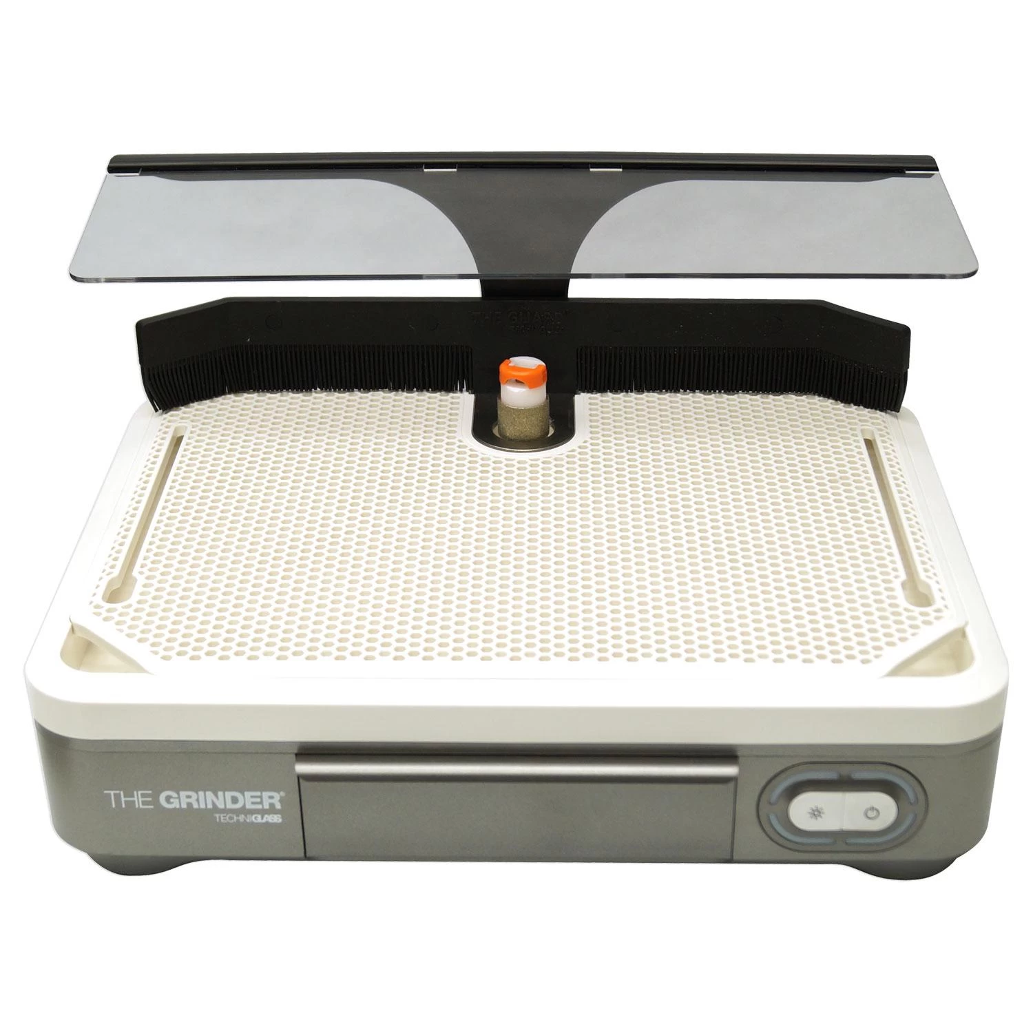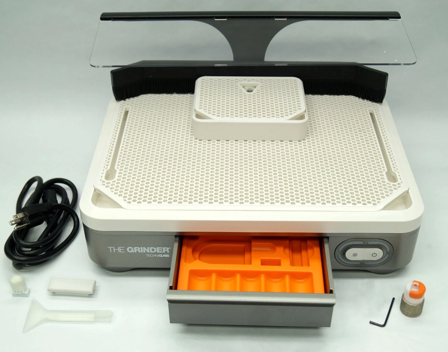 The most revolutionary glass grinder in the art glass world is here. This state of the art grinder has been built with the glass artist in mind. Featuring a large 12″ x 16″ work surface it’s big enough for even your largest project. The removable water tray makes cleaning a breeze. Features a powerful 1/6 HP motor, an additional elevated work surface, Aqua Flow System, built-in accessory drawer, plus 1″ premium long-lasting grinding bit. 7 year manufacturer warranty.