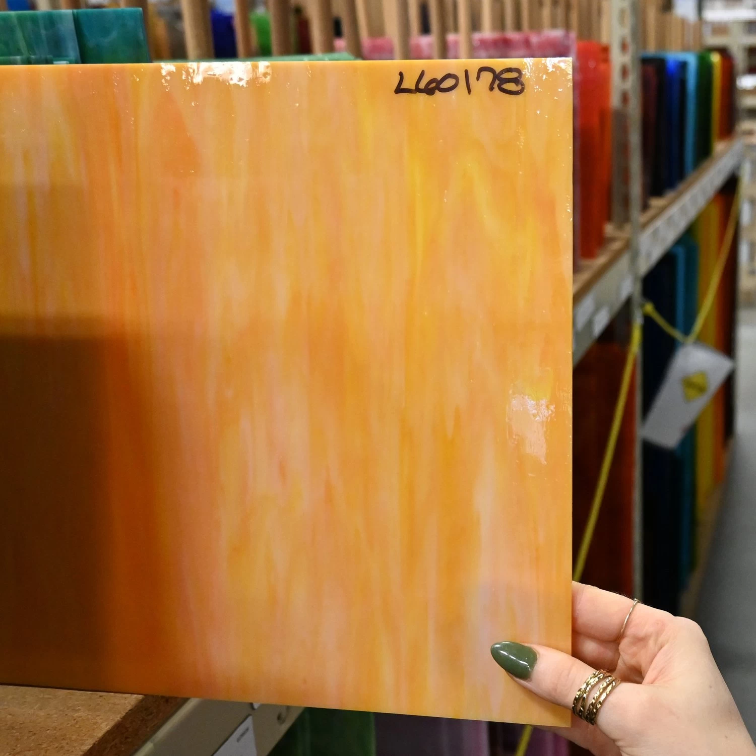 Create stunning stained glass and mosaic projects with the beautiful Tiffany Today line. This glass features rich colors and a consistent texture. Perfect for beginners and professionals alike. Glass is opaque with a mix of colors to create a unique, vibrant, streaky color effect.