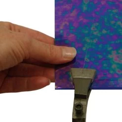 Use pliers to break glass along a score line when the glass can’t be handled comfortably by hand. Wider 3/8″ jaws are ideal for breaking long strips. A good score will snap cleanly with this plier. Turn the pliers over to use as a grozer (grozing is the “chewing” action that uses the pliers serrated jaw to nibble glass away from an edge). 6″ long pliers feature spring loaded jaws.