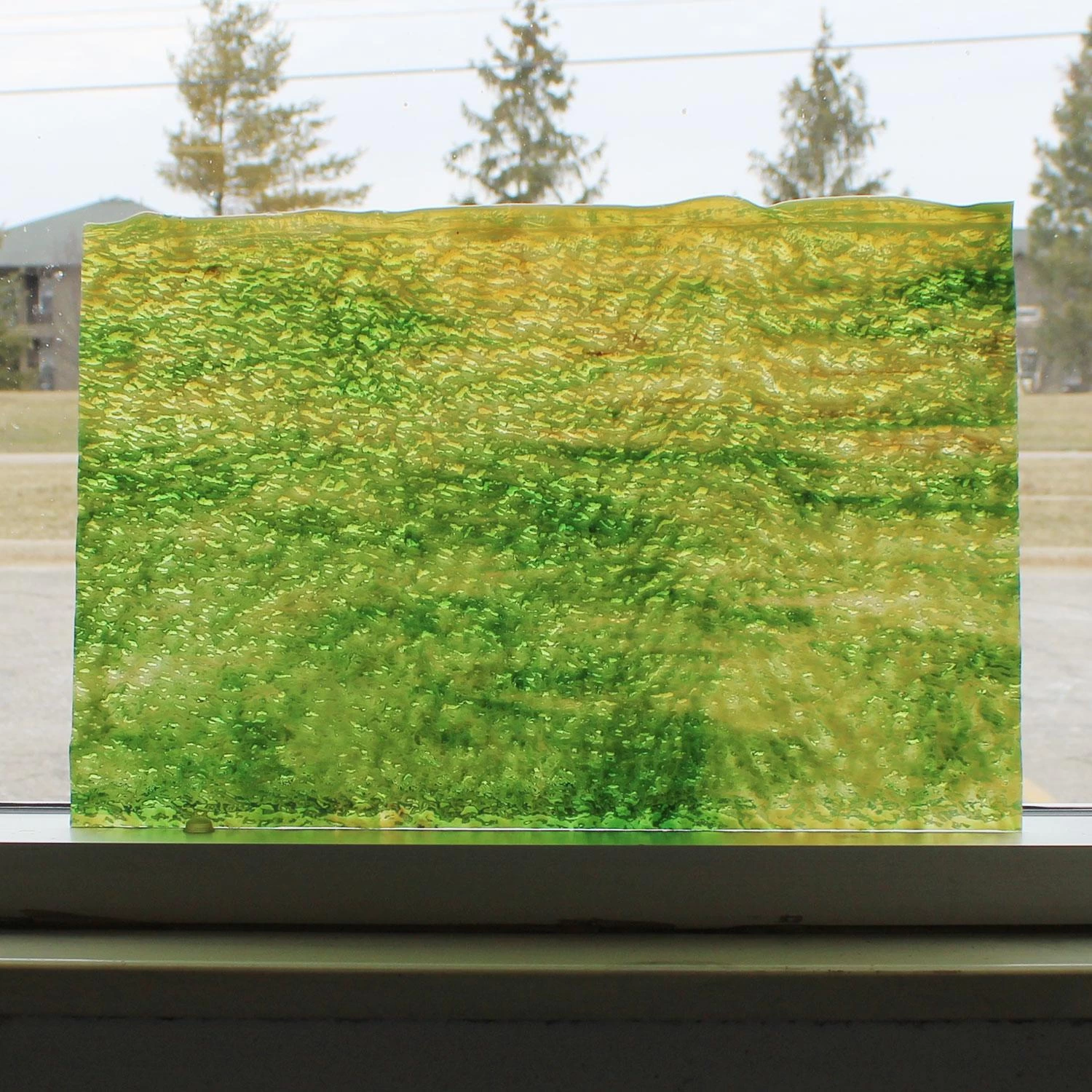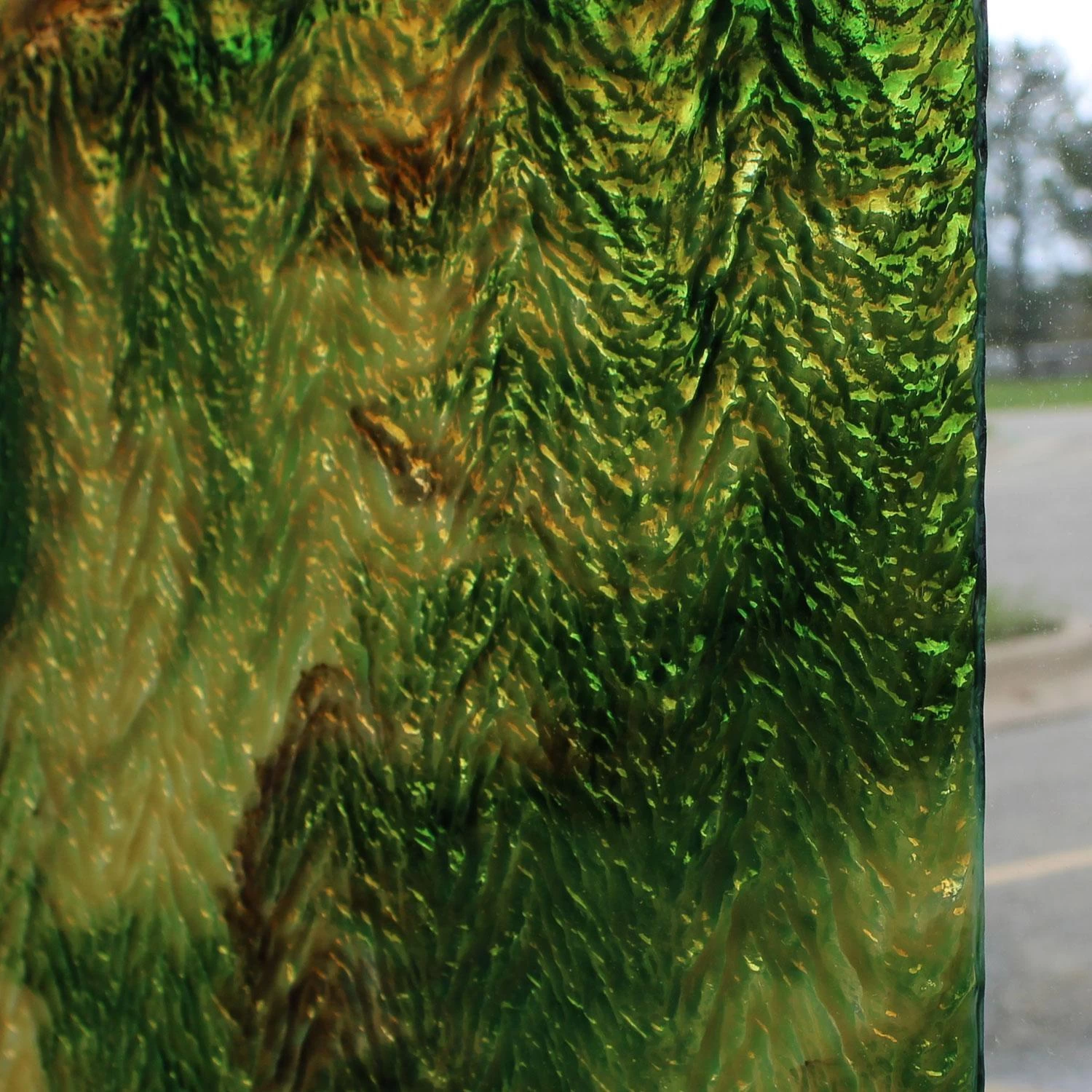 This opaque glass features a herringbone ripple texture. Herringbone ripple textured-glass represents a pinnacle of glass-making craftsmanship. The rough ripples with a zigzag or feathered pattern is created during the sheet-forming process, then quickly cooled to maintain its shape.