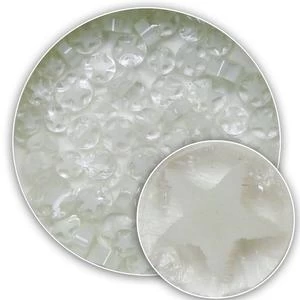 White and clear glass encapsulates opal and transparent glass that centers in a delicate star pattern. Made from premium Bullseye fusible glass, use in fusing, flameworking and micro mosaic projects. 1/2 oz. pack. 90 COE.