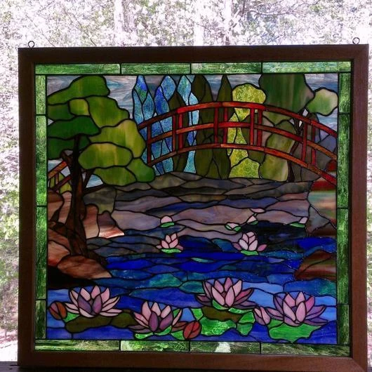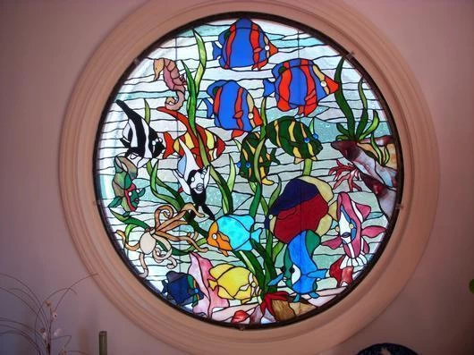 Stained glass garden with pond created by artist Suzanne Wagner. Stained glass garden path created by artist Robert Grimes. Stained glass underwater garden created by artist Sarah DiMichele. From Delphi’s Online Artist Gallery.